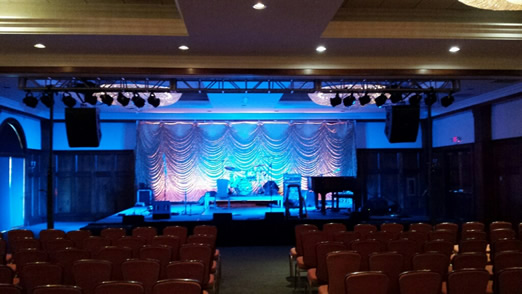 Sound, lights, stage, pipe and drape |